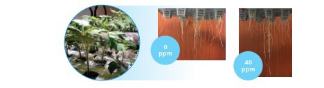 hadden een vergelijkbaar uiterlijk, maar de wortels gegroeid in 40 ppm Intra Hydrocare waren beduidend langer.