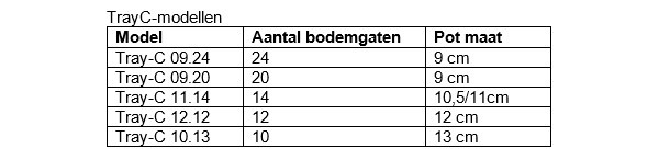 Elke TrayC is herkenbaar aan het speciale logo en de zwarte kleur aan de onderkant met cool grey aan de bovenkant. De trays zijn uniform en zeer goed stapelbaar en dit maakt het inzamelen en sorteren heel laagdrempelig. Door het gebruiken van TrayC ondernemen kwekers automatisch duurzamer en dragen ze bij aan een groot circulair systeem.
