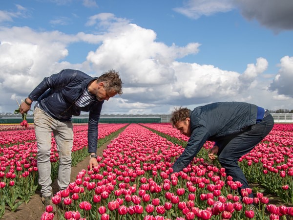 Hoe vergaat het ze als (gedeeltelijk) bio-bloembollenteler? "Omdat we op een zandgrond werken, valt het tot nu toe allemaal erg mee. We kunnen laat planten en vrijwel altijd met een brander het land op. Qua weer zijn de omstandigheden tot nu toe ook gunstig kijkend naar de Botrytis-schimmel, ofwel vuur. Deze schimmel houdt van warm en vochtig weer. De vooruitzichten zijn echter niet zo gunstig, het is spannend of we het gewas ook dan gezond kunnen houden."