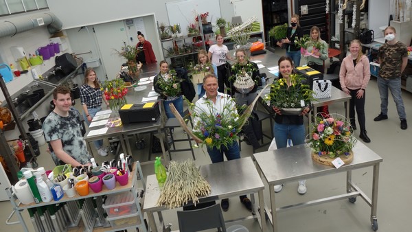 Studenten ‘Bloem & Design’ van Lentiz MBO Westland hebben de afgelopen maand kennisgemaakt met de Freesia. Naast een gastles en een bedrijfsbezoek bij Freesia kweker Ton Vreugdenhil sloten de studenten dinsdag 18 mei jl. af met een afsluitende opdracht rond het thema “Ruik de Freesia”. Uiteindelijk zijn 10 studenten aan de slag gegaan met deze opdracht. Bo Kroes is uitgeroepen tot winnaar. Bo loopt stage bij het bedrijf Reflections of Nature uit Vlaardingen. Bo en alle medewerkers van Reflections of Nature winnen een uitgebreide demonstratie en workshop van Roos van Unen, Flower Factor designer bij bloemistenplatform Flower Factor. De jurering is gedaan door Gerard Gardien van Royal FloraHolland en Roos van Unen van Flower Factor.