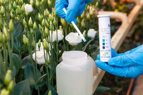 Met teststrips kan de kweker ook zelf eenvoudig tussentijdse metingen doen. Hiermee kan hij het gehalte waterstofperoxide snel meten. Met deze teststrips zie je binnen een paar seconden de concentratie van het aanwezig Huwa-San TR-50 in het watermonster. Het middel past in een verantwoorde en duurzame teelt; het heeft de juiste toelating en voldoet aan de strengste productienormen. En niet onbelangrijk, na reactie valt het uiteen in water en zuurstof, zonder achterlating van residu.