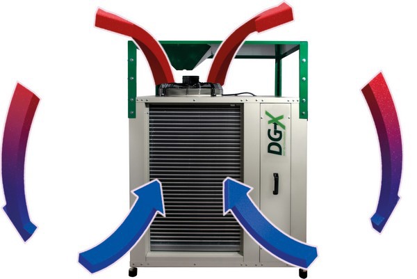 De unit onderscheidt zich door de kleinere afmeting van de installatie: 130 x 110 x 160 cm, weegt slechts 375 kg, heeft de grootste efficiency (l/uur/KWh) in een range van 13-35°C en kan zowel staand als hangend worden geïnstalleerd. De installatie kent een hoge efficiëntie in het verlagen van de relatieve luchtvochtigheid in twee werkgebieden te weten 80% RV bij 18°C en 60% RV bij 26°C. Aan beide zijden is de unit voorzien van panelen waarmee de kaslucht wordt gecondenseerd, tot totaal 16 liter per uur. Ook deze DryGair DGX is voorzien van het gepatenteerde luchtcirculatiesysteem, waardoor deze unit zeer geschikt is voor de teelt van bijvoorbeeld medicinale cannabis. De unit is voorzien van de nieuwste technieken inclusief een afstandsbesturing. Dit maakt het mogelijk om ook op afstand de teeltomstandigheden van uw gewas te kunnen optimaliseren.