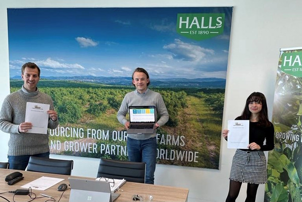Robin Welsh (Halls), Christian Schouten (Logistic Documents) en Eilen Cortes (Halls)