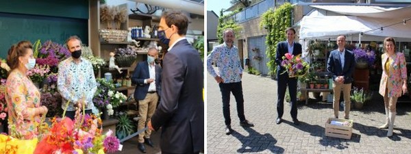 Ook Wopke Hoekstra, demissionair minister van Financiën, ontving deze Vitamine G(roen)-verrassing uit handen van Bart en Judith Ebbers, de eigenaren van De Bloemenvink in Leidschendam. Hoekstra deed toen de belofte om op korte termijn bij hen op (werk)bezoek te gaan, benieuwd als hij was hoe zij als bloemist opereren in coronatijd en welke issues er nog meer spelen in de branche.