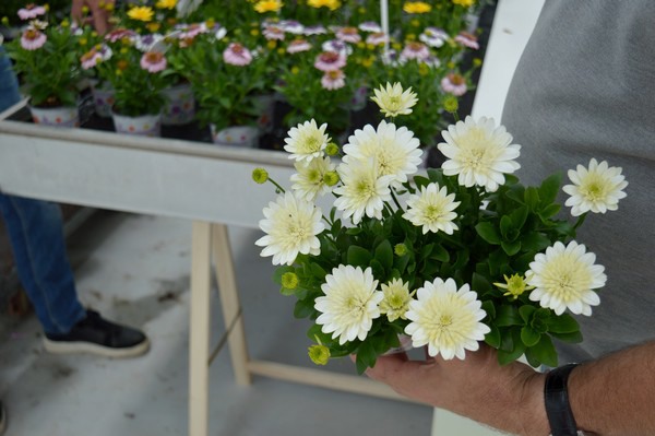 Selecta One van zijn kant is uiteraard happy met de timing. De traditionele trials bij P. Van Geest in Maasland gingen niet door en andere bedrijven, waarmee men normaal gesproken samen presenteert, trokken hun eigen plan. Zo ook Selecta dus, die haar klanten graag verschillende nieuwe series en noviteiten presenteert. De show wordt o.a. gestolen met een nieuwe serie Verbena Drums, een serie compacte planten die volledig zonder remstof geteeld kunnen worden; de nieuwe dianthus I❤U, enkele nieuwe nummers in de Sky series, verschillende noviteiten in petunia’s, en een nieuwe dubbele witte osteo, de “3D Nanuk”.