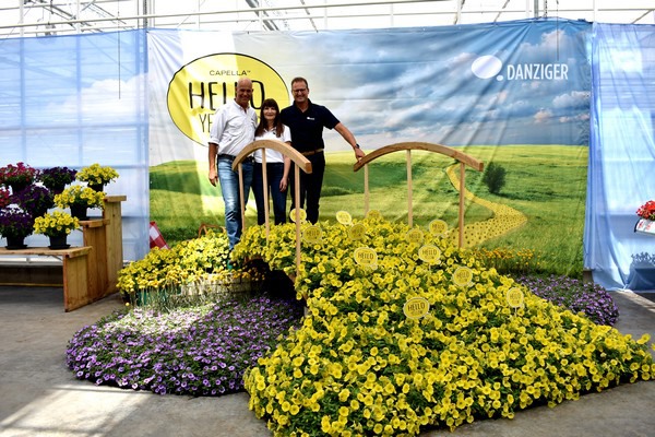 Amir Dor, Ayala Zilberman (vanuit Israël) en Focco Prins van Danziger presenteren de Hello Yellow, een nieuwe gele petunia in de Capella serie. Volgens Ayala is er geen gelere petunia op de markt.