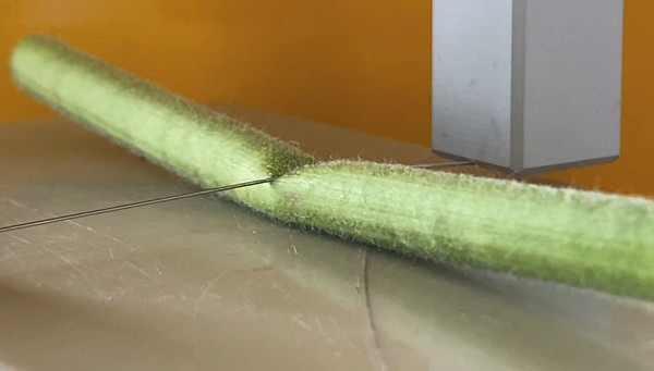 Stevigheid in de bloemen is gemeten door te kijken bij hoeveel druk de steel van de gerbera door knikt (Brookfield texture analyzer). Deze meting liet geen verschil tussen de beide tuinders zien toen nog geen CaTs werd gebruikt. Dit toont aan dat de bloemen van het referentiebedrijf in deze studie geschikt zijn als controle, stipt Herman aan.