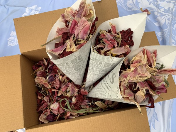 Confetti van biologische tulpenblaadjes. Dit is het nieuwste product van Huiberts biologische bloembollen in Sint Maartensbrug. "We hebben een nieuw product ontwikkeld: confetti van bio-tulpenblaadjes. Gemaakt van gedroogde tulpenbladeren van ons eigen bedrijf. Strooibloemen voor elk feest. Een natuurlijk alternatief waar je blij van wordt. De confetti komt in een vrolijk puntzakje, klaar om te strooien", vertelt Johanna Huiberts.