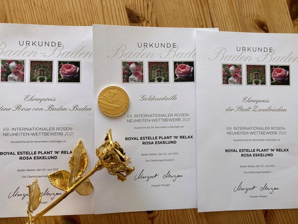 Op 23 juni 2021 kreeg een floribundaroos de "Gouden Roos van Baden-Baden". De roos heet Royal Estelle Plant 'n' Relax en is afkomstig van rozenveredelaar Rosa Eskelund van Roses Forever uit Denemarken. De roos is vernoemd naar de Zweedse prinses Estelle, dochter van kroonprinses Victoria.