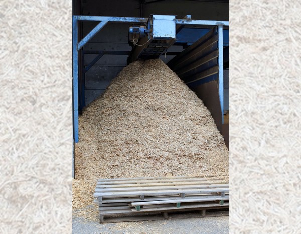 Materiaal van oude pallets, klaar om ofwel gerecycled te worden, ofwel naar een biomassacentrale gestuurd te worden.