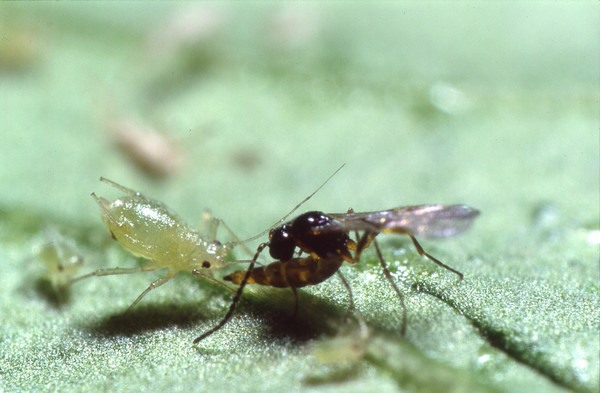 Sluipwesp Aphidius colemani parasiteert bladluis