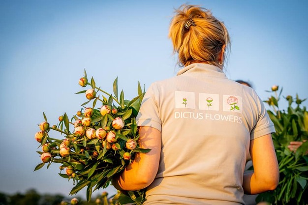 "Bij het oogsten van pioenrozen komt veel kijken. Je moet de bloemen op het juiste moment snijden, anders komt de bloem niet tot bloei. Dat betekent regelmatig door het veld gaan, soms zelfs meerdere keren per dag," vertelt Mirjan. Samen met haar man Ronald runt ze Boomkwekerij Ronald Dictus. Enkele jaren geleden besloten ze de bloemen toe te voegen aan het assortiment van heesters, bos- en haagplantsoen. Zo kunnen ze de arbeidsdruk beter verdelen over het jaar. Bovendien zien ze verdere groeikansen voor de pioenroos.