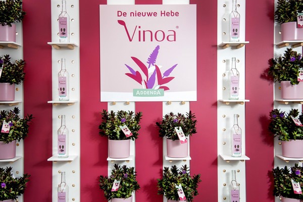 De nieuwe Hebe Vinoa is vorig seizoen geïntroduceerd. Voor dit seizoen hebben de kwekers hun productie voor Vinoa opgeschaald, zodat meer klanten de nieuwe Hebe Vinoa kunnen ontdekken. De Addenda kwekers hebben voor dit jaar een ruim aanbod Hebe Vinoa in diverse potmaten: 10,5 cm, 12 cm, 15 cm, 17 cm, 19 cm en schaal 33 cm.