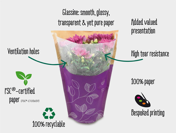 Traditioneel worden de meeste planten/bloemen in plastic hoezen verpakt. De vraag naar milieuvriendelijke alternatieven als de papieren hoes laat volgens Weber Verpackung echter een duidelijk stijgende lijn zien. "Internationale wetgeving met betrekking tot plasticreductie, de veeleisende consument en daarmee de druk van de wederverkopers, zoals exporteurs, tuincentra en retail, zorgen ervoor dat kwekers steeds vaker een papieren hoes als duurzame verpakkingsoplossing kiezen, zowel voor handmatig als (semi)-geautomatiseerd gebruik", vertelt Olaf Amende.