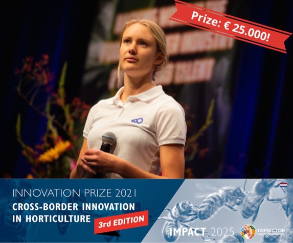 Er ligt 25.000 euro te wachten op 'innovatieve startups' en 'toekomstmakers met veelbelovende cross border innovaties die bijdragen aan een duurzame tuinbouw'. Het gaat om de Topsector Tuinbouw & Uitgangsmaterialen innovatieprijs. Aanmelden kan tot en met zondag 15 augustus 2021.