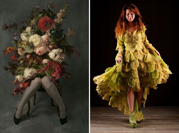 Links: Kaat Stieber - ' Still Life on legs'. Rechts: Agnes van Dijk - 'Groene Kool'