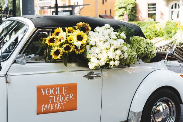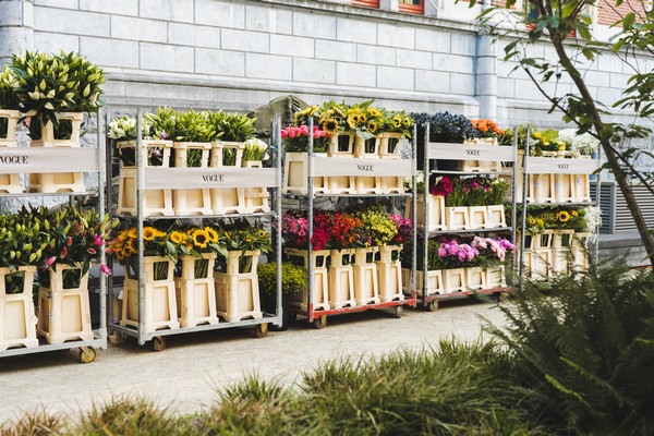 In de stijl van Chanel werden de bloemen in witte en groene kleuren met een tint oranje gestyled. Zo was er de Vogue bloemenwand als photobooth met daarin snij-hortensia’s, rozen, pioenen, gerbera’s, freesia’s, lelies, alstroemeria’s, chrysanten, anthuriums, gipskruid en calla’s. Een eyecatcher van opgestapelde manden met daarin witte hortensia planten was het entree naar de Vogue Store, die de gehele dag geopend was met modieuze items.