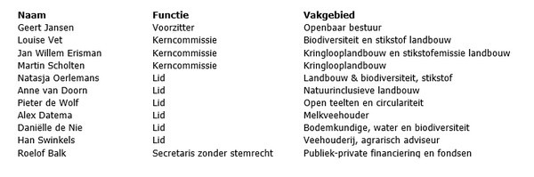 Een commissie van tien leden onder leiding van oud-bestuurder Geert Jansen gaat de aanvragen inhoudelijk beoordelen op duurzaamheid. Een van die leden is Alex Datema, melkveehouder in Groningen en voorzitter van BoerenNatuur: "Veel boeren en tuinders willen nieuwe stappen zetten in duurzaamheid maar blijven steken in ideeën, ook omdat financiering lastig te krijgen is. Wij willen die ondernemers oproepen om met concrete plannen te komen."