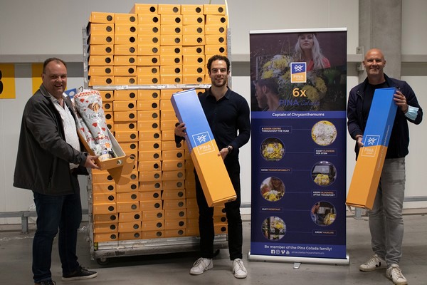 In de quantum boxen was de troschrysant Pina Colada te vinden in drie kleuren: wit, geel en crème. Kweker Fred van Paassen richt zich exclusief op het kweken van het ras.