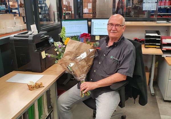Jan van Dam is 12,5 jaar in dienst bij Prins Maasdijk. Hij is bij het bedrijf begonnen als Planner Buitendienst en sinds eind vorig jaar bekleed Jan de functie van Technisch Coördinator. Hierin is hij verantwoordelijk voor alles op het gebied van kwaliteit, gezondheid, milieu en veiligheid. Vanwege de coronamaatregelen kon men zijn jubileum niet groots vieren, maar uiteraard was er wel lekker gebak en een mooie bos bloemen.