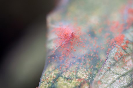 Tripsen (Thysanoptera: Thripidae) zijn een ernstige insectenplaag in kassen die zich voeden met een grote verscheidenheid aan planten door oppervlaktecellen van bladeren te doorboren en de celinhoud eruit te zuigen. "Tripsen hebben een zeer snelle levenscyclus, waardoor meerdere generaties per jaar mogelijk zijn," legt Ian uit. "Aan het eind van het tweede larvenstadium komen tripsen in de grond of in het bladstrooisel terecht. Tripsen hebben de neiging zich te voeden met knoppen en nieuwe bladeren en over het algemeen voeden ze zich het liefst met het bovenste bladoppervlak van planten. Bronzen of zilverachtige bladlittekens en kleine zwarte vlekjes van uitwerpselen zijn te zien op bladeren met zware vraatschade."