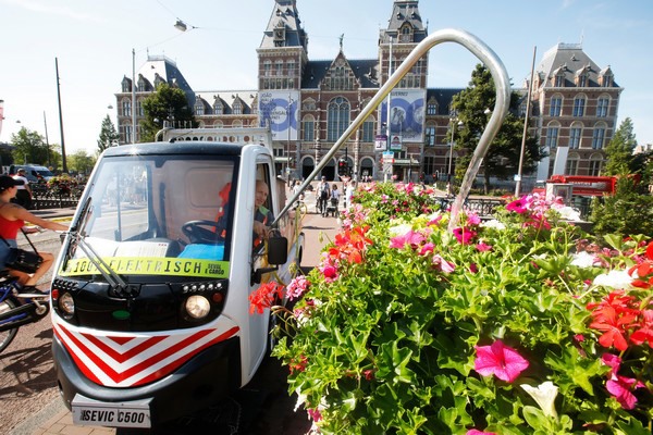 De bloembakken in de hoofdstad krijgen vers water met een zogenoemde E-cargo. De 100% elektrische bestelwagen is door Oase Lease uit Bemmel omgebouwd tot een reusachtige bloemengieter van maar liefst 500 liter. Het water wordt uit de grachten gehaald. Het Betuwse groenbedrijf heeft in gezamenlijke opdracht van de gemeente Amsterdam, lokale ondernemers en hoveniersbedrijf Dolmans Wieringen Prins in diverse stadsdelen duizenden hanging baskets, brugbaskets en piramides aangebracht en zorgt daarbij tevens voor het onderhoud gedurende het bloeiseizoen.