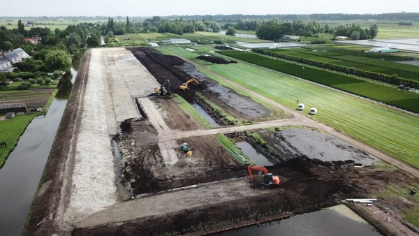 Bij Bremmer Boomkwekerijen in Waddinxveen wordt een waterbassin aangelegd zonder folie. Dit geeft het geheel een landelijke uitstraling. Er wordt ongeveer een meter uitgegraven en er worden kades aangelegd van ongeveer een meter. De kades worden aan de binnenzijde afgedekt met klei waarin wortelstokken van riet zitten. Naar verwachting ontstaat er zo een stevige kade met een begroeiing van riet.