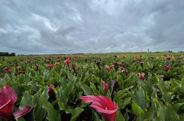 Het merendeel van de calla-bollen wereldwijd komen uit Noord-Holland Noord. Dat kan geen toeval zijn en dat is het ook niet. De zanderige bodem (of eigenlijk zeebodem, tot 200 jaar geleden stond een groot gedeelte van het gebied onder water), in combinatie met een wisselvallig weerbeeld waarbij wind en regen en zon elkaar afwisselen is ideaal gebleken voor de productie.