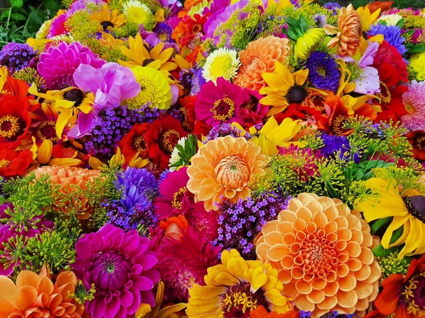 Ook dit jaar is er vanaf maart 3 keer voorgezaaid, steeds met 50 verschillende soorten bloemen. "Naast een paar meerjarigen en de vele dahlia's die steeds weer mee verhuizen naar het nieuwe kavel komen we uit op zo'n 55 verschillende soorten. Die bloemen worden steeds met een maand ertussen uitgeplant waardoor het plukseizoen van juli tot oktober kan duren."