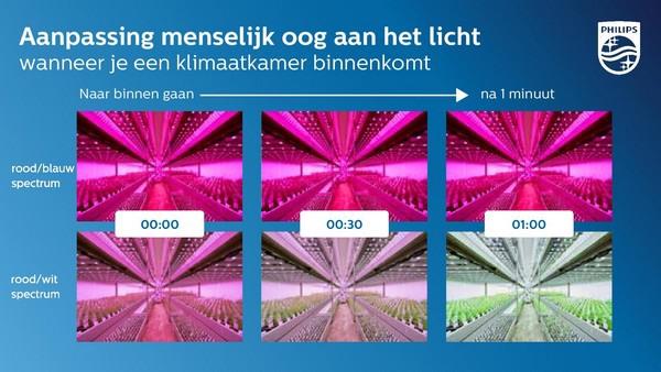 Hoe het menselijk oog zich binnen 1 minuut aanpast aan het andere lichtspectrum in een klimaatkamer