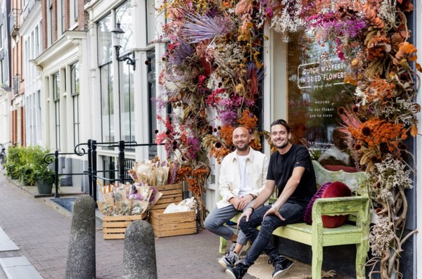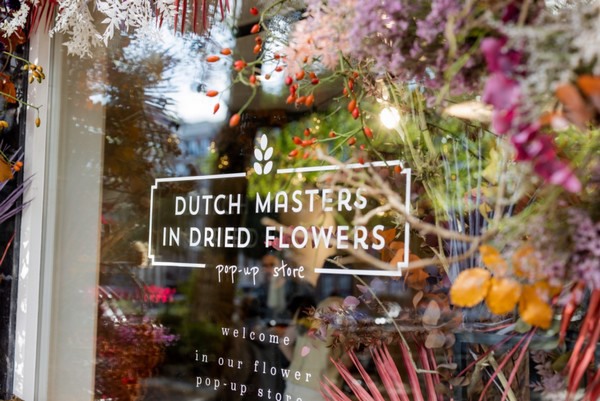 Op Prinsengracht 234 opende Dutch Masters in Dried Flowers gisteren een pop-up store met droogbloemen. “We zochten naar een unieke manier om onze najaars- en kerstboeketten en arrangementen te presenteren”, vertelt verkoper Ronald Hartevelt. “Onze designers hebben dit Amsterdamse pand tijdelijk omgetoverd tot een droogbloemenwereld.”