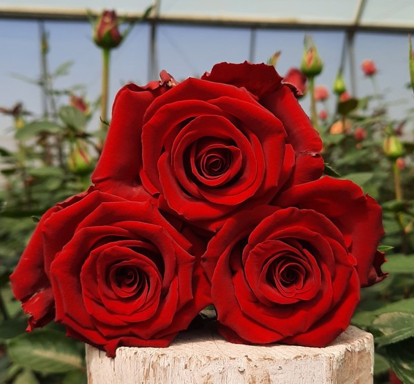 En natuurlijk op het creëren van mooie nieuwe rassen. Er wordt hard gewerkt aan nieuwe rozen en introducties. “We werken nu aan een veelbelovende rode roos, de Red Bentley. Deze wordt bij vijf bedrijven in Kenia getest, is zogezegd al semi-commercieel en zit in de laatste testfase. Volgend voorjaar komen er hopelijk echt aantallen. Handelseigenschappen, transport en vaasleven zijn in elk geval uitstekend en hij heeft een mooie, luxe, open bloei.”