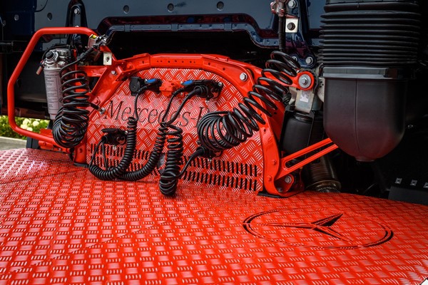 Over de truck vertelt Dimitri van Dongen, Key Accountmanager bij Mercedes-Benz Trucks Nederland: "Deze Powerliner hint naar de illustere Actros-voorganger, de Mercedes-Benz SK, ofwel Schwere Klasse. Dankzij meer dan 30 jaar ontwikkelen en innoveren, is deze Powerliner een compleet andere truck dan de Powerliner die we tot nu toe kenden. Zoals alle trucks van Wolter Koops is ook deze Actros uitgerust met de nieuwste veiligheidssystemen, zoals MirrorCam en Active Brake Assist 5." Marco Boere vult aan: "Qua uitstraling is er bij deze uitvoering nog een schepje bovenop gedaan, met metallic lak en een verlengde zonneklep met led-verstralers, de achterzijde volledig bekleed met traanplaat en een Deense achterbumper met dynamische verlichting. Een herkenbare Wolter Koops truck, maar met een unieke uitstraling."