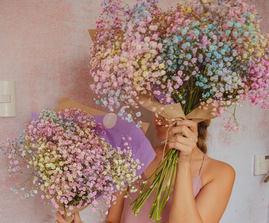 Een "nieuwe" trend is in opkomst op de markt: de geverfde gypsophila. "Vooral de regenboog gypsophila is erg trendy met vier verschillende kleuren in elke steel. Dit is best een lastig en uniek proces, want alleen de sterkste stelen kunnen worden gebruikt om aan de onderkant in vier delen te worden gesneden om vier verschillende kleuren te laten intrekken, terwijl de kwaliteit intact blijft. Toch behoudt ons kleuringsproces de natuurlijke uitstraling van de bloemen en zorgen we ervoor dat we het vaasleven niet in gevaar brengen," zegt Martinez.