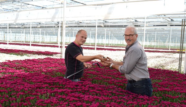Dat ziet ook Marthijn Middelburg van Leen Middelburg Chrysanten uit Kwintsheul. “In de chrysant staat of valt alles met een goede start”, aldus Marthijn. “Met regelmaat meten we de vochtbalans in de bodem. Na toediening van Transformer is deze veel constanter. Je gaat er niet direct een gewichtsklasse mee omhoog, maar het resulteert inderdaad in een egaler, homogeen bed die je in een keer helemaal leeg kunt oogsten. Je hebt een gelijkmatigere start en het groeit gelijkmatiger weg.”
