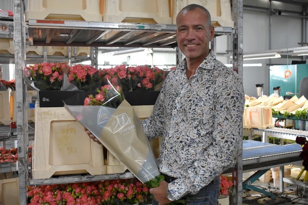 John Stassen, verkoper bij Fransen Roses, met een mooie bos