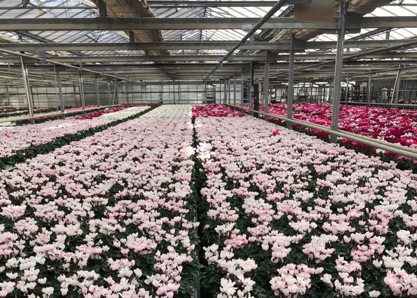 "In de zomer krijgen onze cyclamen, gekweekt in Fréjus, Frankrijk, regelmatig te maken met temperaturen van rond de 40℃. Daardoor hebben ze vanaf het jonge plantstadium te kampen met overmatige warmte. Bij de selectie van onze variëteiten is hittebestendigheid dan ook een van onze belangrijkste prioriteiten." Dat vertelt Héloïse Morel, projectmedewerker onderzoek en communicatie van de Franse cyclamenveredelaar Morel Diffusion. Komend seizoen zal het bedrijf maar liefst 13 nieuwe rassen presenteren, welke as we speak te bewonderen zijn inde kas in 's-Gravendeel.