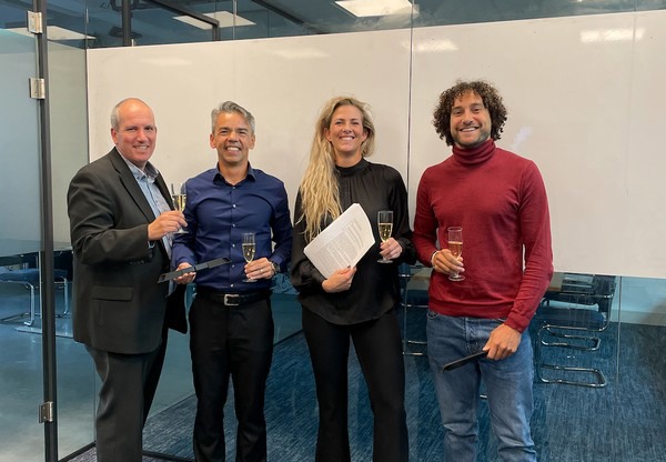 V.l.n.r. Martijn Rietveld (Pilkington Nederland), Alderlan Vitalino (NSG Group), Noortje Jonkman (Physee Group) en Sam Anders (Physee Group)