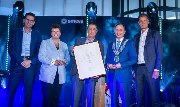 Daar waar strenge coronamaatregelen vorig jaar nog roet in het eten gooide van de festiviteiten rondom het 100-jarig jubileum, vierde Smeva in het Evoluon alsnog de bijzondere mijlpaal met al haar medewerkers van Smeva en Geerlofs en hun partners. ‘Vorig jaar stonden we in een speciale online-uitzending stil bij ons jubileum, maar als familiebedrijf vinden wij het ontzettend waardevol om juist ook dit hoogtepunt te vieren met onze medewerkers en hun partners. Dit predicaat is ook een bekroning op hun werk en een fantastische mijlpaal voor Smeva. Stilstaan bij prestaties uit het verleden en gezamenlijk vieren van successen helpen ons bedrijf bij het uitzetten van de koers naar de toekomst.”, aldus Smeva-directeur Henk Dibbets. Radboud Blom, Algemeen Directeur van Geerlofs Koeltechniek, vult aan: “Geerlofs is ruim 10 jaar geleden opgenomen in de Smeva Group en sindsdien voelen we ons onderdeel van de familie. In de 90 jarige geschiedenis van Geerlofs hebben we geleerd dat betrokkenheid van de familie belangrijk is, rust geeft maar ook de verplichting om te blijven bouwen.”
