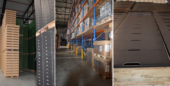 LC Packaging verwerkt in beide opzetstations dagelijks tientallen vrachtwagens met kartonnen opzetdozen en schalen. Op de hoofdlocatie in Sint-Katelijne-Waver (4500m2) is daarom een royaal deel van het pand bestemd voor opslag. Torenhoge stellingen van12m hoog die tot aan het plafond van de loods reiken zijn tot de nok toe gevuld met voorraden karton. “Onze kracht zit juist in onze hoge reactiesnelheid om vlug en volledig in de vraag van de klant kunnen voorzien. We hebben veel op voorraad, zitten op een ideale locatie en de focus van onze service ligt bij het volledig ontzorgen van de klant.”