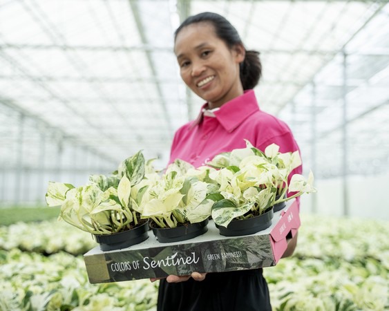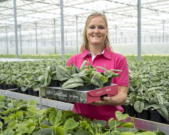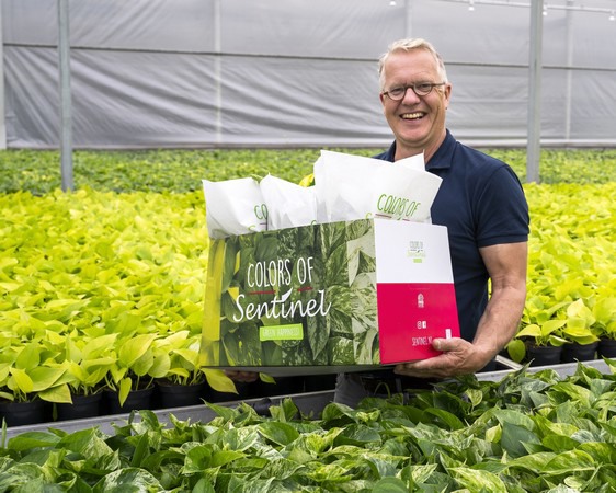Scindapsuskwekerij Sentinel presenteert haar nieuwe verpakkingen tijdens Trade Fair Aalsmeer. De verpakkingslijn bestaat uit een papieren hoes, een kartonnen 6-gaats-tray en een kartonnen Deense doos. Alle verpakkingen zijn gemaakt van FSC-papier en -karton.