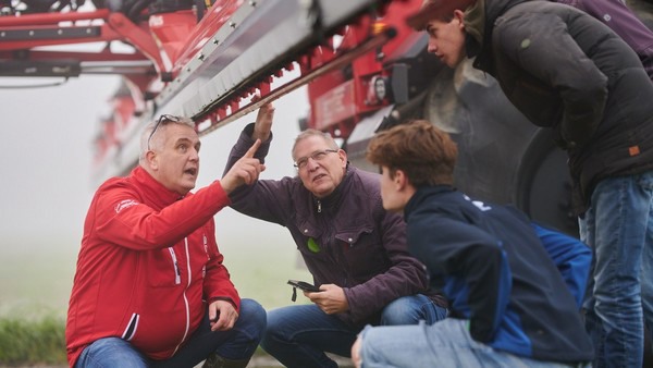 Tijdens de rondgang werden verschillende maatregelen gedemonstreerd om de bodem- en waterkwaliteit verder te verbeteren. Waaronder emissiereducerende spuittechnieken die grondig werden bekeken. Fotograaf: Pim van der Maden.