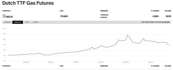 Van 27 naar 28 oktober daalde de gasprijs voor december direct. Klik hier voor vergroting