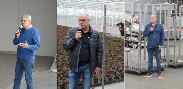 Links John Jansen, Jansen Hibiscus, rechts Dick Olsthoorn van T. Olsthoorn samen met René Olsthoorn, Selecta one.