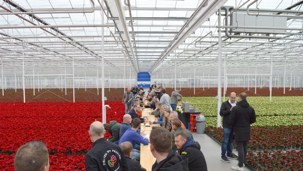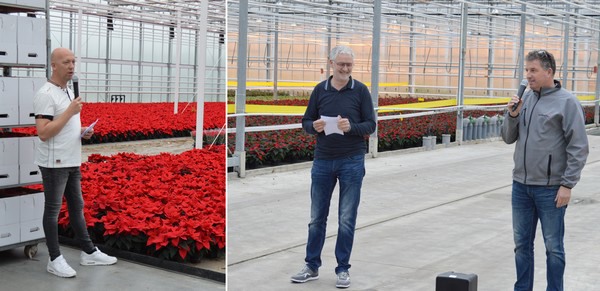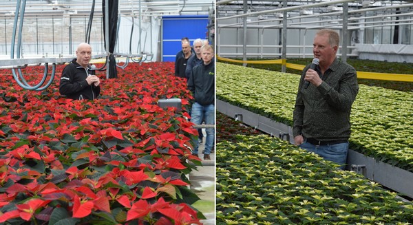 Een van de bijzondere aandachtspunten hierbij was ditmaal het zgn. ‘peat-free’ telen. Steeds vaker zouden klanten veen liever vervangen zien worden door duurzamere alternatieven. Lensli Substrates is een van de substraatleveranciers die hierop inspeelt en zoekt naar alternatieve mengsels. Ook organiseert het proeven in uiteenlopende gewassen, om te zien wat werkt en wat niet. Op de tuin van Jan van der Knaap, alwaar een vergelijkingsproef in poinsettia is opgezet, hield Cock van der Spek een kort verhaal over de voors en tegens. Conclusie: het is heel wel mogelijk te telen op een veen-vrij substraat, maar naar de optimale samenstelling van grondstoffen wordt nog gezocht. Ook moet de teler opnieuw feeling krijgen met watergeven en het toedien van stikstof e.a. voedingsstoffen, omdat een veenloos substraat doorgaans veel minder buffer heeft.