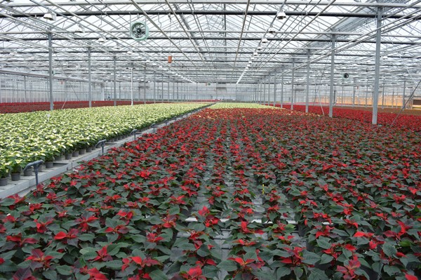 De kerstster an sich, tot slot, hoe staat het daarmee? Vanuit de veredeling, noch vanuit Selecta, noch vanuit de concurrent, zijn noviteiten te melden waarvan de consument stijl achterover zal slaan. Geen nieuwe vormen a la de ‘Mouse’, geen bonte en lichtgevende toestanden als de ‘Skystar’. Natuurlijk wordt er wel gezocht naar verbeteringen op alle mogelijke specs: compactheid, kleurvastheid, robuustheid, etc. Een noviteit die wat dat betreft vermelding verdient is de ‘Ice Princess’, een nieuwe witte, de beoogd opvolger van de ‘Alaska’ en, net als het wasmiddel, uiteraard nóg witter. De soorten uit het ‘Feelings’ assortiment worden het meest geteeld, en dit jaar zelfs weer nog iets meer als vorig jaar.