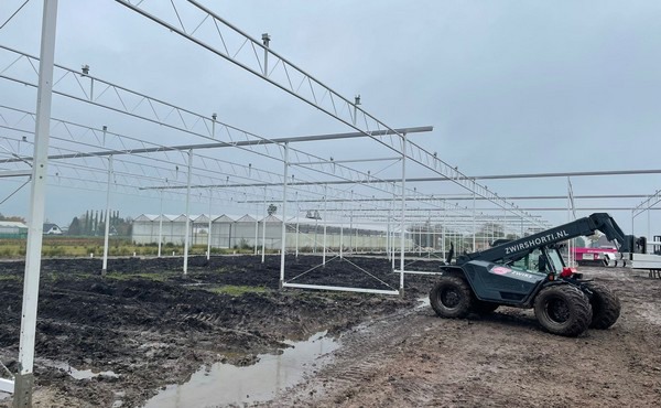 Tholen - Streng Growers in Boskoop teelt een ruim assortiment aan Gaultheria, klim- en fruitplanten, clematis, passiflora en fruitplanten. Ze komen inmiddels ruimte te kort om aan de vraag te voldoen. Op zoek naar extra ruimte deden ze een bod op een terrein aan de overkant van de weg en hebben dit aangekocht. Maar een terrein is nog geen teeltruimte. Inmiddels rijden de mannen van Zwirs Horti Projects af en aan en bouwen zij daar ongeveer een hectare kas. Deze nieuwe kas van exact 9.000 m2 is een aanvulling op het bestaande teeltoppervlak van 15.000 m2.