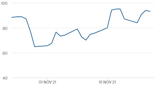 Vorige week schuurde de daggasprijs weer gevaarlijk dicht tegen de grens van 100 ct/m3 aan. Daarna is de prijs begin deze week, in reactie op weersvoorspellingen en pijplijnberichten, wat gaan dalen. Maar, het blijft onrustig in de markt, want de afgelopen dagen steeg de prijs ook weer en klom de prijs weer boven de 90 ct/m3.