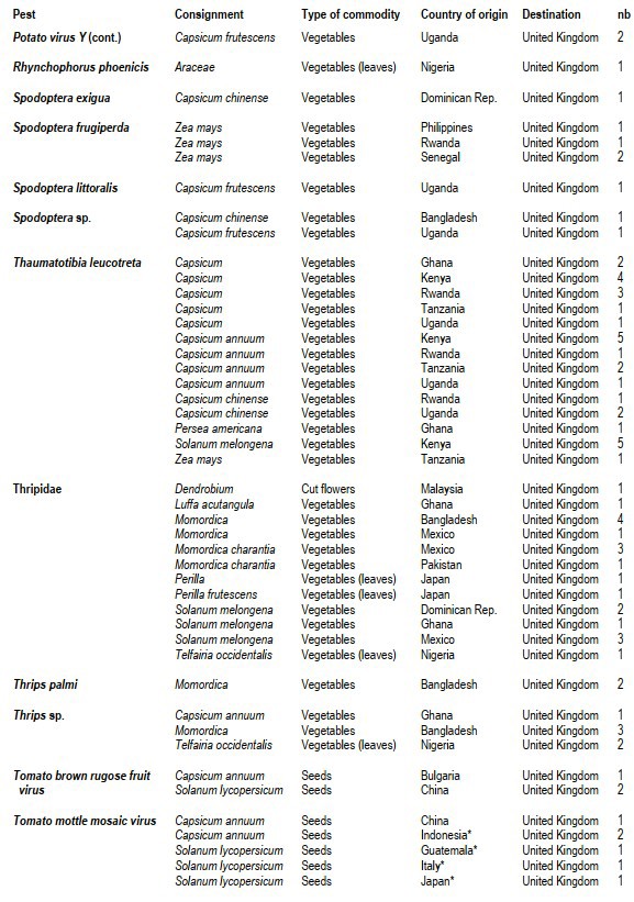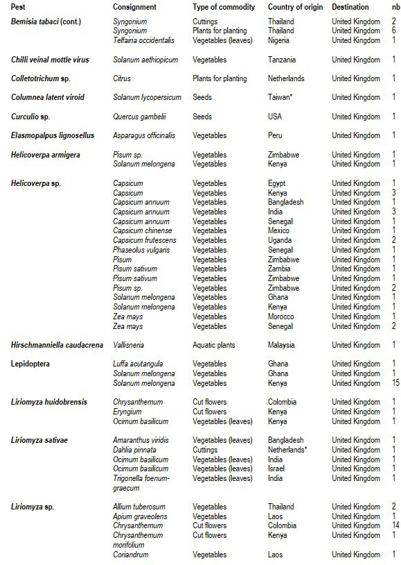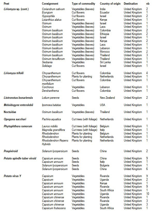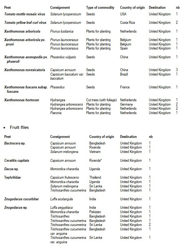 De European Plant Protection Organisation heeft in een novemberupdate een lijst gepubliceerd met overtredingen op plantgezondheidsgebied gepubliceerd voor het Verenigd Koninkrijk voor de periode januari-oktober 2021.
