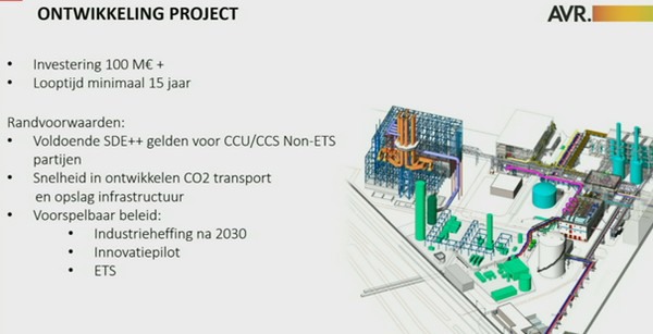 Aan het eind van zijn verhaal kreeg Hans de vraag wat er gebeurt als AVR in de 2021-ronde van de SDE++ geen subsidie krijgt. "Dan schuift het project op naar de volgende ronde." Zodra de subsidie er is, is een doorlooptijd van drie jaar volgens Hans 'wel realistisch'. Gevolgd door een slag om de arm: duidelijkheid over CCS.